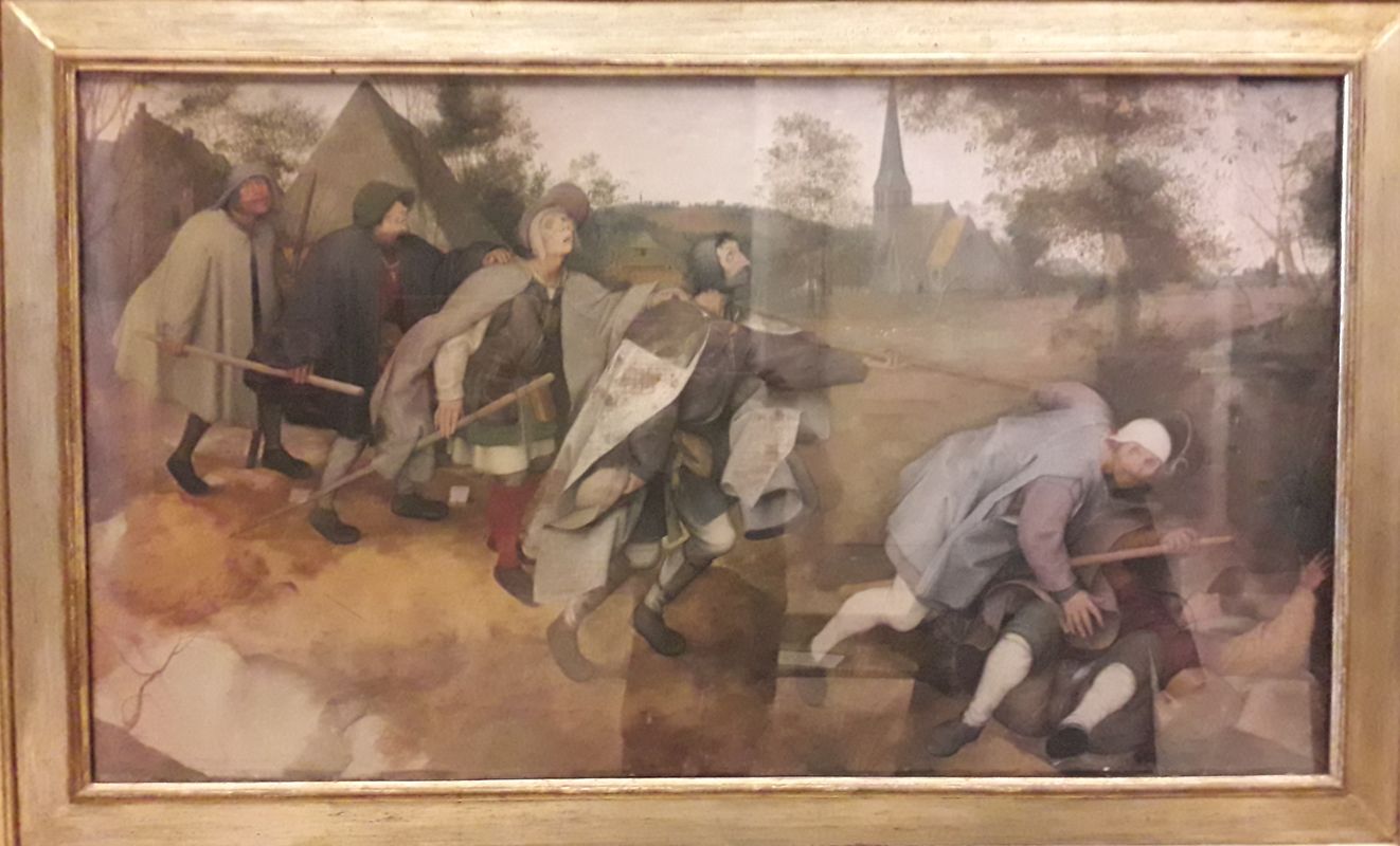 Capodimonte, 30 novembre 2018 - Pieter Bruegel: Parabola dei ciechi. 1568 E' il più grande capolavoro pittorico dell'arte mondiale Notare come cambino le espressioni dei ciechi a seconda della distanza dalla caduta imminente mentre la preoccupazione aumenta Tutti con le orecchie ben aperte Eccole, anche se il riflesso delle finestre sul vetro protettivo mi ha impedito di scattare delle buone fotografie