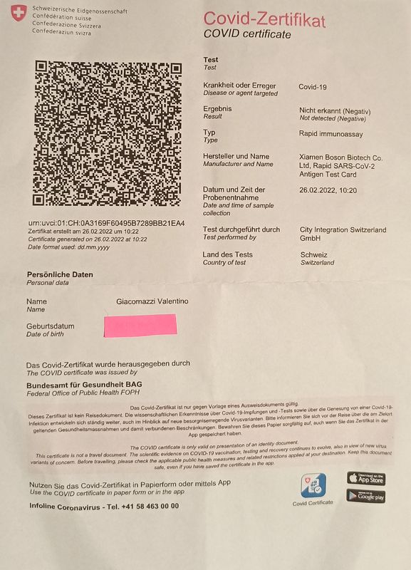 Zurigo, 26 febbraio 2022 - Anna ritira i nostri risultati dei test COVID-19 negativi (non avevo dubbi...)