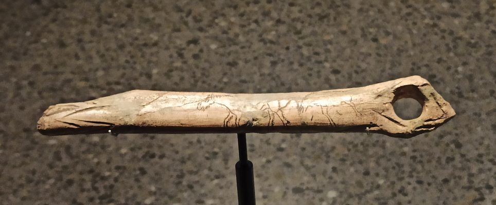 Palco di renna traforato con immagini incise di cavalli del 13.000 a. C.