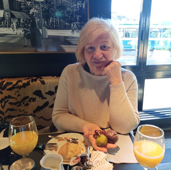 Zurigo, 27 febbraio 2022 - Colazione alberghiera affollata - Uva, fichi e maracują (frutto della passione)