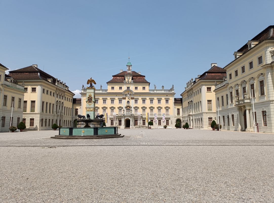 Ludwigsburg, 10 luglio 2023 - Cortile inteno con fontana e residenza principale