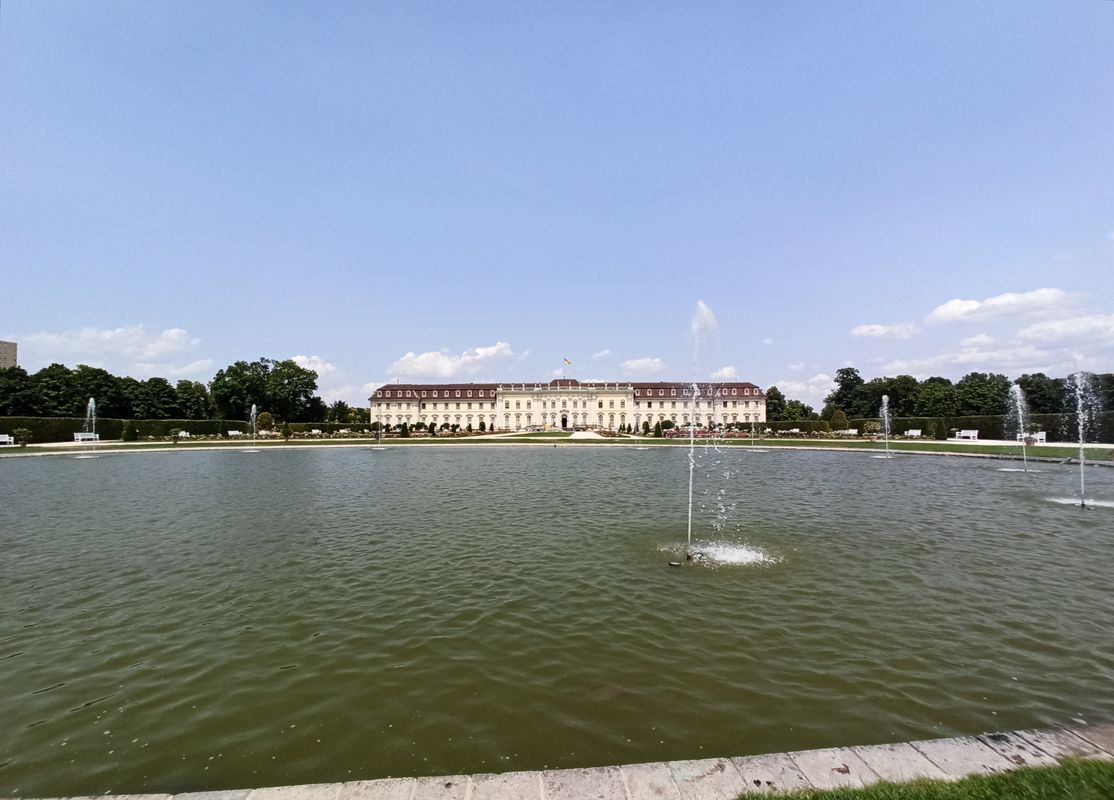 Ludwigsburg, 10 luglio 2023 - La Residenza vista dal lato meridionale dove trovasi una vasca che è un lago...